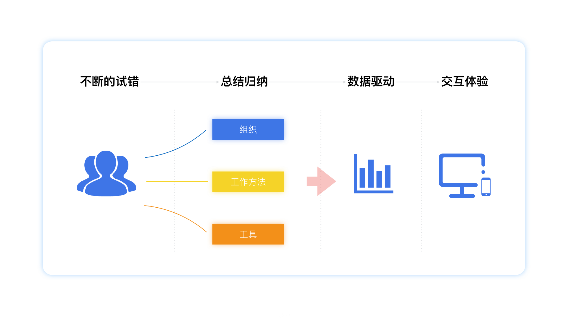多数人能够成为很厉害的设计师,很厉害的产品经理。凡事都会有所谓的套路,当你熟知分析某个行业,或者多个行业的套路时。你会站在更高的视角看待问题,同样你会走的比人家更远更快。所谓的套路,是基于个人而言,可能你有个很好的导师能够告诉你以往的经验。但是我更认为,套路是顺利获得一步步看似笨拙的努力不断总结不断归纳。